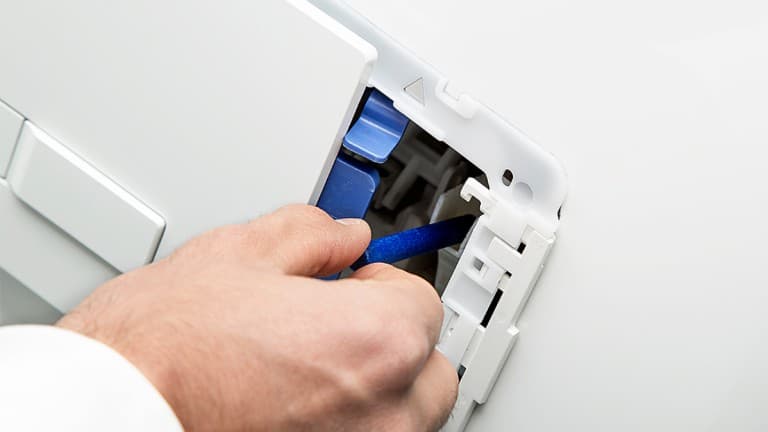 Problēmu var viegli atrisināt, iztīrot zilo caurulīti (zem skalošanas pogas), kurā stienīti ievieto. Vispirms izvelciet stienīti, un tad iztīriet un izmazgājiet caurulīti ar siltu ūdeni.