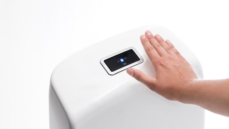 Sensori, kas klozetpoda skalošanas funkciju ļauj iedarbināt ar rokas vēzienu, aiztaupa pieskaršanos vietai, kas var būt baktērijām visbagātākā vieta visā mājā. Automātiskā skalošanas funkcija ne tikai novērš mikroorganismu izplatību, bet arī nodrošina skalošanai izmantojamā ūdens daudzuma izvēli, tādējādi ļaujot samazināt ūdens patēriņu. Mūsu piedāvātiebezskāriena skalošanas risinājumi ir arī higiēniski un viegli tīrāmi.